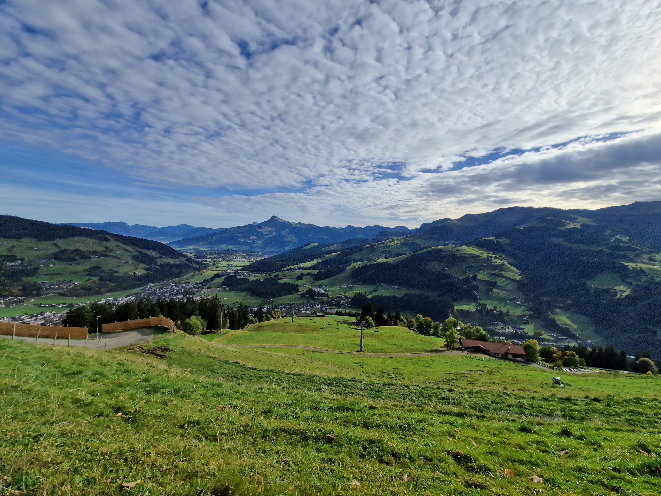 Einen ganzen Tag muss man einkalkulieren für die Tour auf die Fleckalm (ca 1000hm) und den Fleckalmtrail runter, rüber nach Kitzbühel, Hahnenkamm rauf (noch mal 1000hm) und Hahnenkammtrail runter. Der Fleckalmtrail ist ein Tiroler Signaturetrail und das zurecht, lang, super spannend und abwechslungsreich, teilweise flowig, aber teilweise auch technisch anspruchsvoll, S2 – im Gegenzug dazu der absolut flowige, entspannende Hahnenkammtrail mit S1 aber umso mehr mit epischen Ausblicken auf die Streif, das Horn und den Wilden Kaiser.