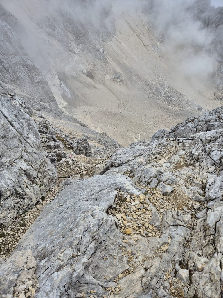 Um 9 Uhr morgens gings dann mit dem Bus nach Habernau, wo die Strecke startete, 10km zuerst auf Straße und Forstweg nett leicht bergan laufend, dann begann der Steig, bei dem an Laufen nicht mehr zu denken war. 1900hm am Stück bergauf, über Felsen, Leitern, Metallhaken und durch Wolken und Nebel. Kurz nach der Welserhütte verirrte ich mich etwas im Nebel, fand aber nach 20 Minuten wieder eine Markierung und kam so zur Scharte, wo es auf der anderen Seite ins Tal nach Hinterstoder hinabging. Davor jedoch noch über den Kamm zum Großen Priel, dann wieder ein Stück zurück und den stark verblockten Track hinunter zum Prielschutzhaus. Dort einen selbstgemachten Kuchen und Red Bull vor dem letzten Abstiegs ins Tal – leider noch sehr steil – auch da war an Laufen nicht zu denken. Erst auf den letzten 4km konnte ich wieder ins Laufen kommen, dann waren die 30km und 2000hm im Sack.